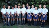 L-R: Trey Padayachee, Nathan Raubenheimer, Nirav Dhanesar, Heinrich Prinsloo, Ryan McKean, Joshua Hounsell, Mr Gavin Lambooy (Headmaster), Tayla Baker, Leah Stewart, Savanna-Belle Fyvie, Karla van Eeden, Carlene Burgess.