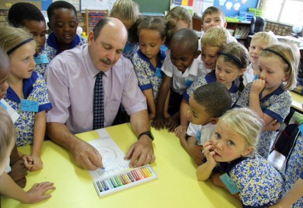 L-R: Quillan Fyvie (Grade 4), Ruth Fyvie, Savanna-Belle Fyvie (Grade 7), St John Hall (Guest Speaker), Mr Gavin Lambooy (Headmaster)